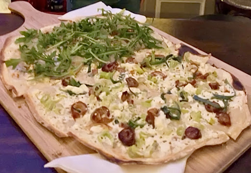 A hidden gem in the middle of the 18th district-one of the most hip districts in Vienna. The hosts are very friendly, the restaurant very cosy and intimate..feels like one's own living room..so could easily become ones local. They offer tasty Flammkuchen, the one with goat cheese is highly recommended.. payment with card is easy.A non smoking bar, which is a plus for those wanting to enjoy a nice meal without having to launder their clothes and wash their hair afterwards! Provisions for smokers are made outside of course so all are taken care of. Definitely a restaurant worth paying a visit,when looking for...