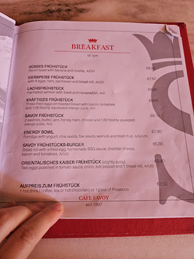 Read moreCurrently visiting Vienna for the first time .Cafe Savoy is an Art Deco Restaurant serving the Local and international LGBTQA community and friends. Located opposite Nachmarkt area which is like a trendy hub of hostels and other cool bars and establishments. Cafe Savoy is a go to place to be seen and perfect meeting place. Food is good reasonably priced fri the classic red book menu.Place gets busy at various times of the day inside showcases its Art deco glory outside you have two terraces available. Shout out to Eric who is a server there and a credit to the company very professional. Sometimes the staff have a Cowboys and Indians situation where your told different things and looks as though it’s not resolved . The big things here are table reservations and payment of bills for food or drinks .All of which are not often made clear . Worth a visit though if your in town you can also have a version the Chocolate cake here which is the...