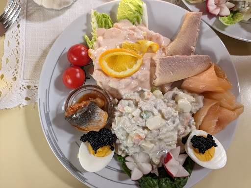 Read moreIch bin begeistert von diesem kleinen aber feinen Café! Obwohl wir schon viele Jahre hier wohnen, sind wir erst jetzt wieder hier eingekehrt um den Heringsschmaus zu genießen. und die s ist wahrlich ein Genuß. Nicht nur für den Gaumen sondern auch für's Auge! Sehr liebevoll angerichtet mit Ei, Kaviar, Lachs, 2 verschiedenen Heringssalaten und Makrele. Uns hat's ausgezeichnet geschmeckt! Auch die Preise sehr moderat: das Krügerl um 4,40€ und ein Jugendgetränk, 0,5l um 2,40€! Man fühlt sich sofort willkommen, sehr nette Atmosphäre und liebevoll eingerichtet. Wir kommen...