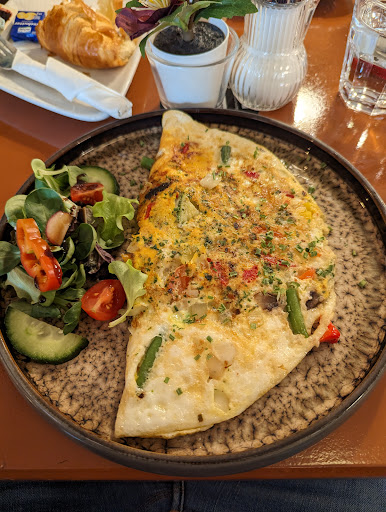 Read moreDas vermeintlich günstiges Angebot für's Frühstück entpuppt sich als übertrieben teuer.. Anstatt zwei Brötchen pro Person wie angeboten, haben wir für zwei Personen, folgende Änderungen gewählt,1 Weck, 2 Kornspitz, 1 Croissant und einen zusätzlichen Kaffee noch , 7,50€ mehr bezahlt.. Richtige Abzocke, wenn man bedenkt das das gesamte Frühstück 8,50€ kostet... Das tückische dabei ist, man wird nicht darauf hingewiesen dass jede Änderung einen Preisaufschlag hat . Fazit, für 1 Kornspitz, 1 Croissant und zusätzlichen Kaffee (weil die Tasse winzig ist) wurde ordentlich kassiert.. finde unverhältnismäßig... Die Tische sind winzig, man weiß nicht wo man was und wie hinstellen soll, gut das der Nachbartisch frei war, ansonsten auf dem Schoß platzieren..