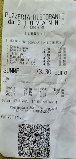 März 2024: Nach längerem waren wir in letzter Zeit wieder öfter im Da Giovanni und können (wie früher) nur das Beste berichten. Im Sommer wunderbarer Gastgarten und viele Plätze im Innenraum - auch stets gut besucht. Zurecht! Das Personal ist durchwegs freundlich und zuvorkommend - auch bei vollem Lokal. Ebenso sind die Wartezeiten auf die Speisen immer im Rahmen. Und natürlich ist die Qualität der Speisen absolut TOP! Ob Standard-Karte oder saisonale/Wochenkarte oder Pizza - alles frisch, hausgemacht und schmackhaft. Auf Sonderwünsche wird immer ohne Probleme eingegangen. Hier kehrt man sehr gerne ein und geht immer satt...