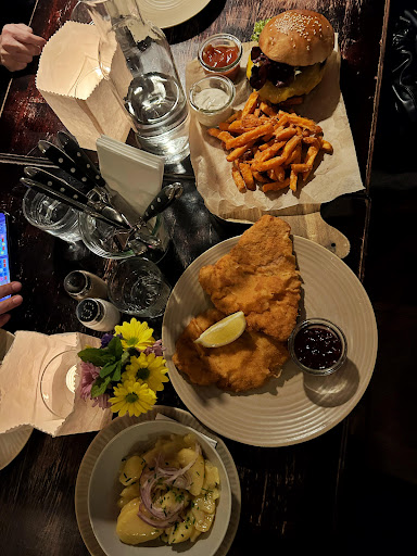 We ordered wiener schnitzel and Augustin burger. The wiener schnitzel came with potato salad. I have to say I've never tried something like this potato salad. But it paired perfectly with the pork schnitzel. Warm and cold together. Hearty warm pork schnitzel with cold fresh potatoes. Yuuumm! And the Augustin burger was also perfect!