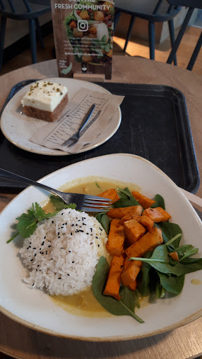 Read moreThe salad was a bit strange in my opinion because of all the various different ingredients together, but quite good, I was surprised. The cake is really good. The banana bread isn't much worth a mention. The wrap was alright. There were barely any other people there when I visited, that was nice, and there wasn't any loud and obnoxious music inside, which is always a plus for me. It was nice to sit outside on the benches and eat with friends but I'm not sure if I'd visit again by...