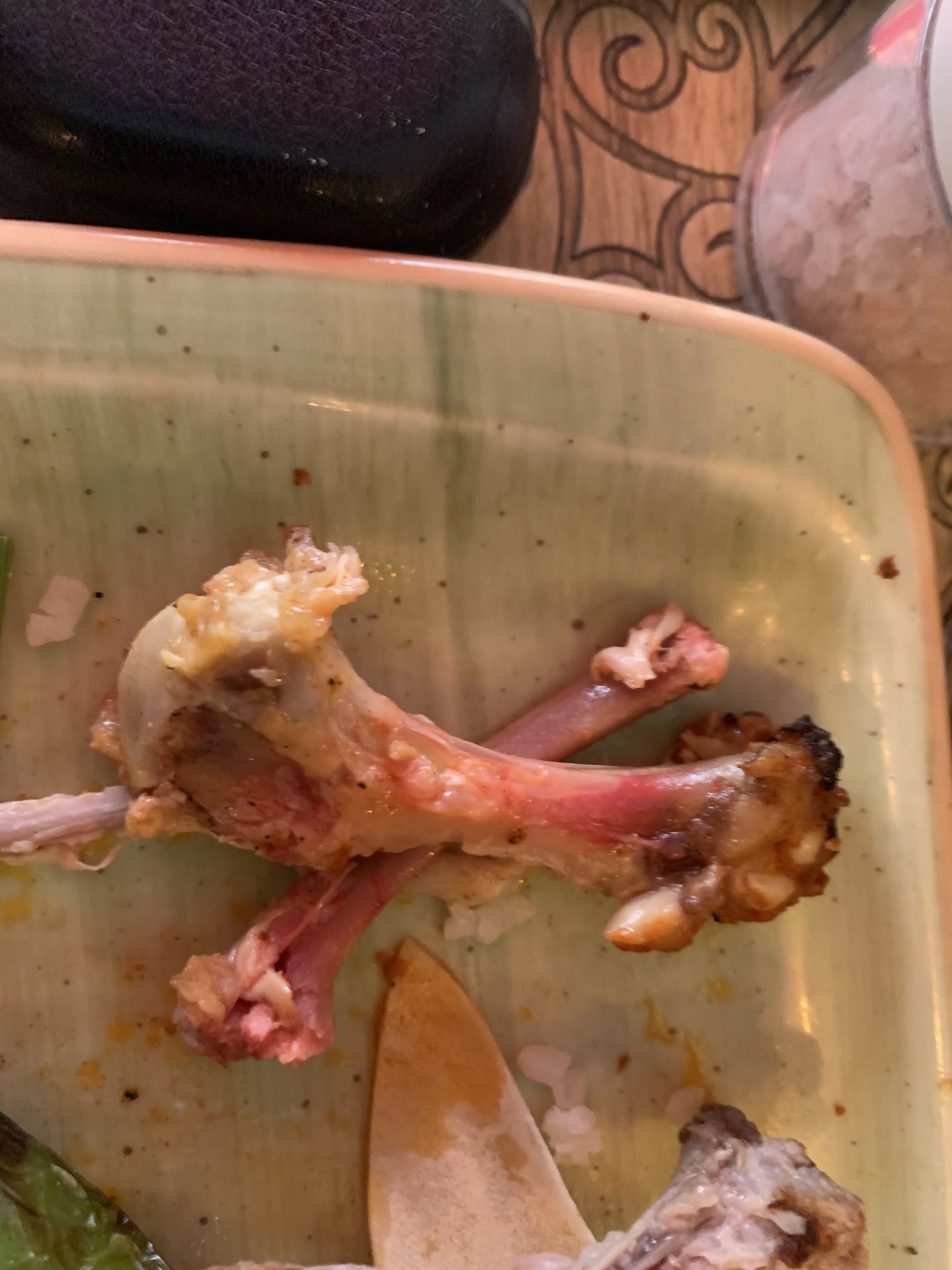 Now, let's talk food. The meze? Pretty meh, to be honest. I've had much better, and I probably wouldn't bother ordering them again. The fries were nice and crispy, and the rice was alright. However, I really disliked the onion salad – it barely had any parsley and no sumac, which totally missed the mark for me. The real highlight was the grill plate for two. This massive platter included lamb chops, grilled minced lamb and veal skewers, a beef kofta skewer, four chicken wings, a chicken skewer, rice/fries, homemade lavash bread, grilled tomato and pepper, onions, and fresh salad. The chicken on this plate was amazing, truly a standout. The pfefferoni (peppers) were nicely spicy, the veal was good, and the lamb cutlets were great.