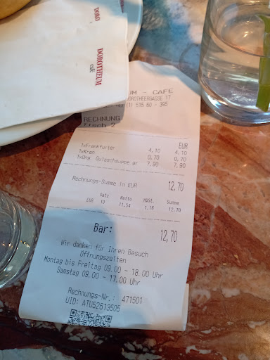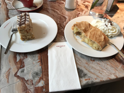 Read moreWe were on the tourist trail through Vienna city centre when an overwhelming need for coffee and cake hit. Using Google Maps to find cafe's in the vicinity it identified the Dorotheum as only 50m away. Standing in front of the large and beautiful building there was no sign of a cafe but it did have Dorotheum in big letters over the entrance. So pressing on we found ourselves in a large gallery with an imposing stone staircase spiralling upwards. On the 2nd floor we spotted tables through a glass screen and entered an oasis of calm with a coffee bar at one end and a display of cakes at the other. Instantly a waiter was at hand guiding us through the mesmerising selection of coffees many of which had lashings of whipped cream floating on the surface. The strudel and layer cake were fine but not out of the ordinary. What makes this place special is it is quiet and refined and as a bonus you can look at art on the way out. If only the prices were a little less painful. Well worth searching for this place if you don't...