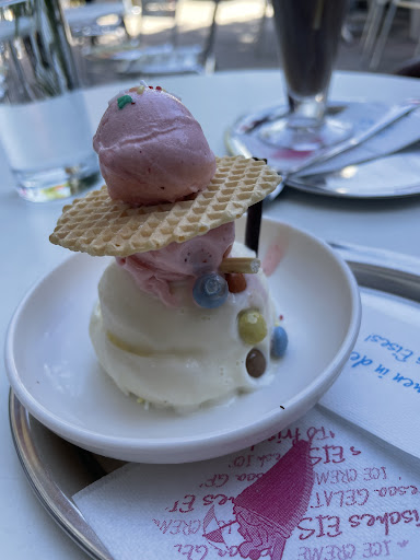 Read moreHeute am 29.07.2019 einen Amareno Becher bestellt und war eigentlich schon sehr enttäuscht. Das Eis selbst ist ganz ok, aber hat immer eine leicht wässrige Konsistenz und ist auch in der Temperatur schon am Limit, also zu weich. Aber die ganze Aufmachung des Cup eine dilettantische Meisterleistung. Warum ?; Die Gläser müssen aus den 70er Jahren sein. Noch dazu verschiedene Gläser am selben Tisch. Inhalt 4 Kugeln Eis, ein Löfferl Schlagobers, 5 Kirschen und etwas Soße. Nicht höher als 6, 7 cm. Sah sehr mickrig aus und ohne Liebe zubereitet. Nicht eine frische Frucht darauf. Sowas kann man als Becher nicht verkaufen. Die an und für sich nette Terrasse ist mit ergrauten Plastiktischen und so hässlichen Zweier- Plastikbänken zugestellt, keine Sonnenschirme in den Haltern. Hässlicher und liebloser kann man seine Terrasse nicht präsentieren. Fürchterlich wie diese Plastiklandschaft aussieht. Bei den Tischen sind schon ganze Ecken herausgebissen. In diesem Eissalon fehlt alles was Unternehmerischen...