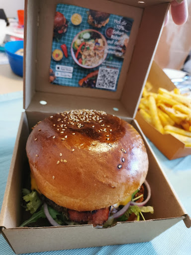 This burger joint was awesome! The burgers are HUGE and delicious! The brioche buns were soft and pillowy, but didnât get soggy. The meat was tender and not over cooked! I ordered the fried onion and bacon burger while my boyfriend ordered the Signature Burger. I think the onion burger was better, but both were a solid pick. The burgers range from ~âŹ10-16. The signature burger needed more of their sauce or salt(?)- it was a bit lacking there. The fries were perfectly crispy on the outside and well seasoned. Overall would highly recommend to try this local spot. The cooks are also the waiters (if you donât order via their online app, which they prefer), as it is a small shop, but they were very friendly. We didnât try the hot dogs, but we saw someone eating it and it looked incredible as well! There were maybe 5-6 tables of outside seating, and a bar for inside seating. Come support this...