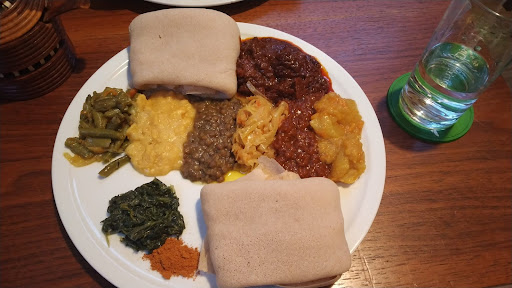 The injara, tibs, and wot were all delicious. The vegetable sides of potato, cabage, green beans, spicy lentils were so scumptious. Not to mention the man who ran the restaurant might be the nicest man in all of Europe. His smile brighten up your day. He also plays great 80s/90s music.