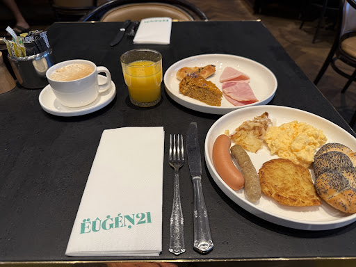 Das Ambiente? Ja ein Hotel Restaurant und am Abend doch ziemlich leer. Schade, dass keine Laufkundschaft vorbei kommt. Das Eugen 21 wäre ein Besuch wert! Und der Service war dieses mal von Anfang bis Ende konsistent gut. Sehr freundliche Kellner, die speisen wurden gut erklärt. Also was wünscht man sich noch mehr?