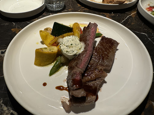 My main was a super small “ribeye”, just two pieces. You can’t call this a ribeye steak by any means. My partner wasn’t having so was having a small watermelon carpaccio - just a few VERY small bites of watermelon (I didn’t capture it sorry). It’s ridiculous how little they serve for the price there, not to mention our 50 minute wait.