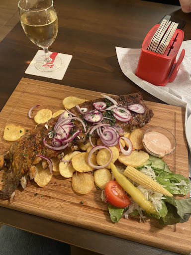 Read moreFabulous restaurant! We came early after a visit to the art gallery. The food was very tasty. We ordered the Viennese soup & soup with pancakes to start. For mains, we ordered the goulash & pork ribs, fries and salad. The ribs were huge so hubby, helped me out as it was far too much for me. The dessert was hot apple strudel. I had pancakes with ice cream. The service is brilliant. I really enjoyed the wine with elderflower X 2. The two gentlemen staff were attentive and polite and spoke superb English. Thank you for a lovely welcome. I'm glad we came. Thank you. I don't think you will be disappointed in this restaurant. The price stated was for three courses and four drinks, which is excellent value...
