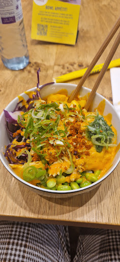My bowl was mostly inedible. I got a large salmon bowl, which came with a very small amount of salmon while half my bowl was occupied by julienned carrots and edamame. Then it was drowned in wasabi mayo, which was quickly squeezed out of a bottle over the whole bowl.