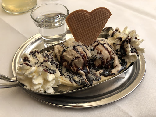 We went there to have an ice cream in the middle of the day. It was empty inside and the place had a strange feeling attached to it like this, but we decided to get an ice cream for each of us (three persons). After spending almost €20, we decided to go outside with the ice cream and enjoy it at their terrace tables. Right after we sat at a table out of all that were free, a lady comes shouting at us if we are going to buy something from her, maybe a coffee, otherwise we cannot sit there. We were all left like ":|" after being directly told to leave their tables where we were eating their products.