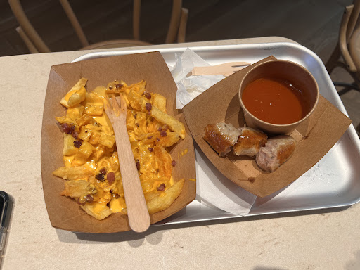 Ich habe mir die Backfisch fries bestellt und einen coleslaw dazu. Die Fries selbst waren nur ok wenn man bedenkt dass das ganze Lokal nur Fries macht. Leider nicht ganz crispy und auch nicht wirklich gesalzen. Insgesamt hatte ich ca 3 gewürzte Fries. Zu dem Fisch möchte ich mich eigentlich nicht äußern… weder gesalzen, noch anders gewürzt. Crispy war er aber geschmacklich gibt es nichts zu sagen da es nichts zu schmecken gab. Nicht einmal die Zitrone hat es besser gemacht. Für 13,50 eigentlich schon fies. Sehr schade, denn ich hatte davor überlegt mir die cheese fries zu holen. Die hätten wahrscheinlich weniger enttäuscht. Der colslaw war solide: crunchy und juicy. Die sauce zu den Fries war aber gut (senf,ei).