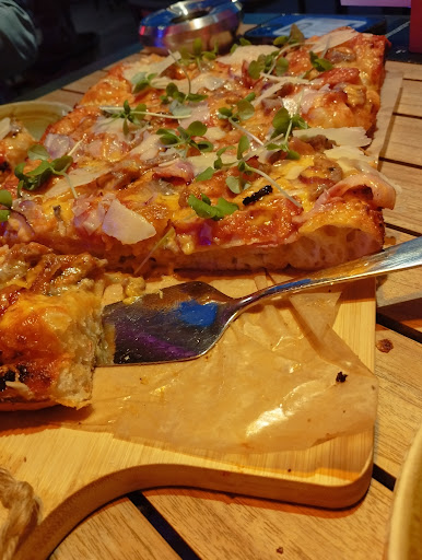 Read moreAlso. Wo fangen wir an. Es wurde nicht pünktlich aufgesperrt, bin erst mal paar min in der kälte gestanden. Im Endeffekt mussts ich über den "zaun" steigen und mir selber einen weg hinein suchen. Wir Waren eine runde zum Essen, ich war als erster da, nachdem ich schon 10min allein am tisch sitze, währen weirde EDM baselines in mein ohr scheppern, bin ich halb am verdurschten weil die beiden type hinter der Bar keine Ahnung was machen, gut 15min mein kollege kommt, danm sitzen wir halt zu zweit durstig rum, obwohl wir die EINZIGEN anwesenden neben dem Personal waren 😂 wait. What?.ja....naja als der kellner endlich mal vorbei kam (ohne den Gedanken uns nach Getränkewünschen zu fragen) mussten wir ihm entgegschreien damit er uns hört (musik Dancefloor Lautstärke) ob wir denn mal was zu trinken hätten können, zwei bier hatten wir bestellt, was kommt? ... Heineken. HEINEKEN? Leute.. naja immerhin gibts chimseer in der flasche das einzige gute an dem Laden. Das Heineken vom fass hatte eigentlich keine Kohlensäure mehr und ich fand es grindig und wollt es zurück geben, ooh nein das geht nicht weil schon boniert 😂 dann kann man sich auch noch für dumm verkaufen lassen, wenn du es nicht zurück nehmen willst dann sag einfach nein, dann hätte ich wenigstens einen grund gehabt wieder zu gehen.. kommen wir zum essen.. oder besser gesagt zur "pizza" das ist im grunde ein großes blech käsebrot, ein vor fett triefendes Knoblauch käsebrot für 25 euro...(Feedback vom rest des tisches gleich, die hatten ein "käsebrot" mit Schinken. Da ende meine reise auch, hab 2,5 stück gegessen, gezahlt und bin weg gewesen und das bleib ich auch. Kann ich auch sonst nur jedem empfehlen. Das einzige was nett ist ist das Interieor. Einziger pluspunkt. ALLES andere mittel bis letztklassik. Alles...
