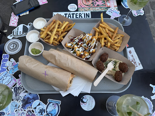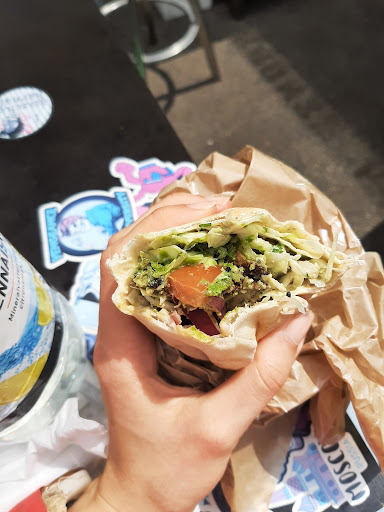 Amazing selection of vegan options, probably the best food I had on my whole trip... I had the spicy black bean falafel wrap (in pictures) and my mom had the regular falafel wrap. Both tasted amazing. The ingredients were fresh, falafels were fried on the spot and the combonation of different textures was spot on. Both wraps also tasted different from one another, the regular one had a lovely minty flavour and a good crunch whereas the black bean one had this kind of spicy lingering undertone with a sauce I can't really describe. The plum-cardamom softdrink sold there was also really good. Would also come back to try the cauliflower shwarma and the bowl versions of the dishes....