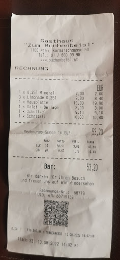Fazit: Das Buchen Beisl - als Beispiel für andere seiner Art - ist retro auf eine unspektakuläre ehrliche Weise. Ich hab mich wohlgefühlt, und komme sicher wieder, schön, dass es solche Zeitzeugen noch gibt. Eine willkommene Alternative für alle, die es mal richtig wienerisch bodenständig...