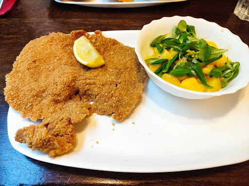 I tend to be cautious when it comes to 100 percent gluten free restaurants, because while it means I can safely eat there while having Celiac, it also means I worry that it will be a "healthy" restaurant. Where the usage of "gluten free" is in the same category as "Paleo" or "keto", a new dietary trend that often makes food which is both expensive and unappealing to actually consume. This is not that. I drank a Gluten Free Rhubarb Shandy and ate the Pork Schnitzel, as they had run out of veal, and there was a moment where I was tempted to simply cry because "it just tastes like delicious food". Breading that was crunchy, not soggy on the bottom, flavorful, and stuck to the meat even when cut, a feat of gluten free engineering only possible in Austria presumably. A gluten free beer without a unpleasant bitter aftertaste and an actual head when pouring? Incredible. Beyond this, I did not pay an exorbitant price for a meal which I can assure you would cost at least 40 dollars in the US, which I payed around 25€ for. There is a level of baseline disappointment you have with Celiac, that when you eat at such a restaurant you will go "oh, this isn't actually schnitzel but it's pretty good for what it is" Again, this is not that. Your schnitzel will be delicious, your potato salad will be delicious, your sauerkraut will be delicious, and your beer will be delicious. I only wish I had eaten the strudel too, but, alas I did not. Please for the love of die glutenfrei Gött...