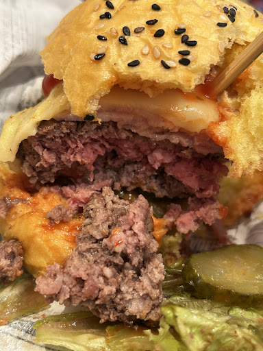 Bei den Hauptspeisen wurde es leider nicht besser. • Burger: Das Beste am Tisch, aber nur „ok“. Das Brioche-Bun war etwas zu kross, das Fleisch war gross und geschmacklich in Ordnung. • Clubsandwich: Sehr trockenes Fleisch, teils hart, bei einem fehlte das Spiegelei. Der Toast war so knusprig, dass er beim Schneiden zerbröselte. Die Pommes hingegen waren gut. • Erbsenstrudel: Ein Erdäpfelstrudel mit gelegentlichen Erbsen. • Paprikahuhn: Geschmacksneutral, matschig und fasrig. Die Butternockerl sowie die Sauce waren ebenfalls enttäuschend das Huhn wirkte, als wäre es stundenlang im Wasser geschwommen.