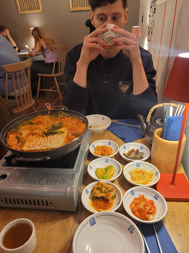 Read moreThis was my first time trying the Korean hotpot, and it was absolutely delicious. My boyfriend and I ordered the tofu and pork meat hotpot, and we also chose to add noodles to it, which was perfect to fill both of us. The hotpot was super flavorful and not very spicy (for my boyfriend, who's not used to spicy food, it was a perfect amount of spiciness). In addition, the hotpot came with delicious side dishes and it was cooked on our table. The meal was super hearty, warm, and flavorful with a bit of spiciness. It had a lot of vegetables, so It was also very nutritious - which was a plus to me. We also ordered the warm chocolate cake with ice cream on top, perfect dessert. Right amount of sweetness, super fresh warm cake, delicious and deep chocolate flavor, and a creamy delicious ice cream on top, which made the perfect combination. I am not a dessert fan, but this was delicious. To drink, we ordered the Korean tea (I forgot the specific name for it, but it said it was "korean"), also very nice and light flavor.