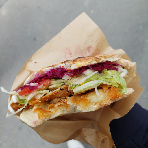 4,9 Euro für Hühnerkebab, rundes Brot, kleine Portion ich war zu Mittag dort und trotzdem scheinbar bereits seit Längerem der einzige Kunde. Das sage ich deswegen, weil der Spieß kalt und trocken aussah so wie wenn eben schon lange nichts mehr heruntergeschnitten wurde und er nur warm gehalten wird. Der Spieß war generell optisch kein Highlight und ziemlich orangelich. Es wurde mit der Maschine heruntergeschnitten, ohne darauf zu achten von der dunkelsten Stelle herunterzuschneiden, sondern einfach von der hellsten. Für mich ist das immer ein Stich ins Herz... Das Fleisch war teilweise kalt und wie vermutet ziemlich trocken. Manche Stücke waren aber warm. Geschmeckt hats OK, stark gewürzt. Würde ich aber nicht alleine pur ohne Beilagen essen. Das Brot war sehr gut. dünn, weich und ist nicht gerissen oder gebrochen. Geschmeckt hats auch. Auf das Fleisch kam eine Kräuter-Yoghurtsauce die sehr salzig war. Danach Eisbergsalat, dünn geschnittene weiße Zwiebelringe, halbe dünn geschnittene Tomatenscheiben und Rotkraut. Die Tomatenscheiben in der Aluschale sahen schon etwas angetrocknet aus. Die Frage ob ichs scharf mag habe ich natürlich bejaht und mich für das Pulver anstatt der Chilipaste entschieden, da diese oft einen zu intensiven Eigengeschmack haben. Das Pulver war überhaupt nicht scharf. Belegt war der Kebab sehr gut, er hat sich perfekt essen lassen und bei jedem Bissen war von allem etwas dabei. Das könnte man wirklich nicht besser machen. Mir ist auch gar nichts runtergefallen und es bestand zu keinem Zeitpunkt die Gefahr sich anzupatzen. freundlicher Verkäufer. Fazit: gut belegt, Brot sehr gut, Fleisch allerdings nicht so prickelnd. Insgesamt hats gut...