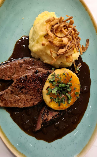 Quite possibly the best Austrian food in Vienna. And it's not just that the food isn great, but the staff is super friendly and attentive. We've been there a dozen times now and it never disappoints. This all leads to a very loyal following from the neighborhood, and it's rare to see tourists out here. That said, it's less than 20 minutes from the city center via the #40 tram. Just go to the last station and your there ! They have a daily prix fixe menu option and Thursday is my favorite with the very generous Wiener Schnitzel. Yesterday we had Frittatensuppe, Fischsuppe and shared a pear and gorgonzola ravioli in a light cream sauce. All this set in a class old Vienna building with high ceilings a wood paneled dining rooms. There are also small tables in the front room across from the bar. Update 12/23/23: another wonderful meal with great service! Today Saturday Roast Day and the Roast Beef was stellar. It was served with au gratin potatoes and sautéed vegetables. The wild game ragout was...