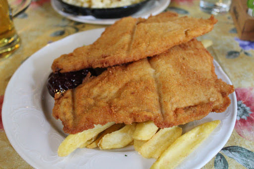 Chose the schnitzel (of course), and was recommended the pork version. And it was huge!! Two massive schnitzels on top of chips (fries). Taste was great, it was not dry. Only problem... it was too much food!!