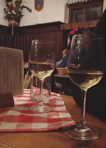 Being a Heuriger (wine tavern), the place does not serve beer. We both had a glass of their house red, a wonderfully subtle and soft wine that did not interfere with the taste of the food, but complemented it.