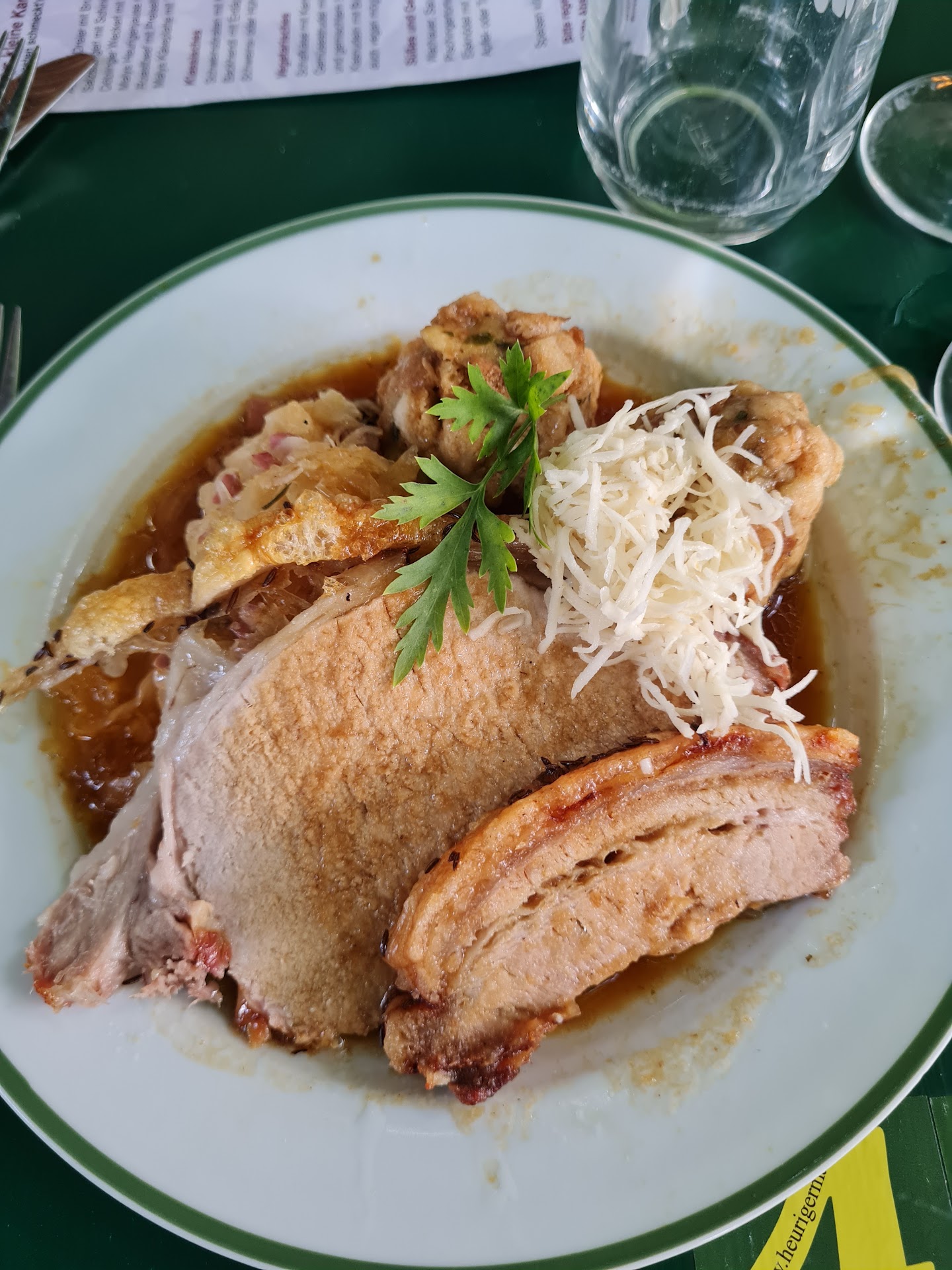 This place will certainly become one of my go-to restaurants!!! It has a really nice garden with almost all of the seats in the shade. The staff is attentive and friendly and fast. The food is typical heurigen food and very tasty. You can either order from the menu or go into the restaurant and pick what you want. Heurigens are known for wine of course, but if you are with beer lovers there is also beer and radler. For something typical Austrian order Schweinsbraten and Gemischter Satz (white wine). Reservations can be done online and it is a 2 min walk from the end stop of the 38 tram. I would especially recommend going with a group of friends but this place is so nice outside I would also recommend it for a date! The way the tables are set up allows for enough...