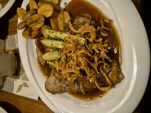 Me and my husband were looking for a place to have dinner at on a Sunday evening in Vienna. As tourists we were looking for "suggested places"/"picture perfect places", but obviously they all were already booked. We took the risk, trusted the reviews of the place and via The Fork app booked a table here. Even though the outside of the restaurant seems as something we normally would not choose, we went with it, and - IT WAS WORTH IT. The food was great, prices - even better and service - 10 out of 10. We ordered gulash and gordon bleu, and it was delicious! Plates are...