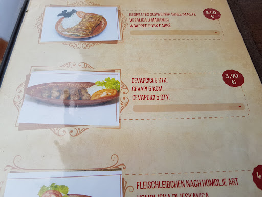 Read moreSe ci si trova a Vienna e si vuole una grigliata mista, fuori dal Centro, a soli 8 minuti dalla fermata Wien Oper, ma anche partendo da altri punti della Ringstrasse (direzione Laurentzgasse nel 5° distretto, Margareten) con il tram n. 1 o con il 62 si raggiunge la stazione Laurentzgasse (sotterranea), si sale su e "Homolje Grill" ce l'hai dall'altra parte della strada principale. Avevamo prenotato per le 20,00 ed il nostro tavolo era riservato, all'esterno. Piatti della cucina serba ma in genere dell'est Europa Balcanico. La grigliata era il motivo principale ma mi hanno attirato i Sarmi (presenti in tutta la cucina balcanica ma anche greca e turca), un involto in foglia di cavolo lavorata allo scopo, contenente riso ed altri ingredienti, ottimi per accompagno in attesa della grigliata. Una porzione, tre grossi Sarmi, serviti accompagnati, secondo il gusto e se le si vuole usare, con una panna acida e una piccante. Buoni, da provare, costo porzione € 5,60!!! Arriva la grigliata (la carne e le salsicce le avevamo ispezionate nel banco frigo al momento della prenotazione) ed è subito chiaro che è abbondante per quattro persone. Molto buona e anche ad annaffiare con più di mezzo litro di buona birra si arriva a fatica a terminare il tutto. 28 euro per quattro persone, 7 euro a testa (un solo wurstel in un panino per strada costa più di 4 euro, da evitare). Il conto totale, 2 porzioni di Sarmi, 4 di grigliata, 6 birre da 1/2 litro, 15 euro a persona. Se hai già mangiato la Schnitzel, il goulash ed altri piatti della cucina Viennese, val la pena di provare...