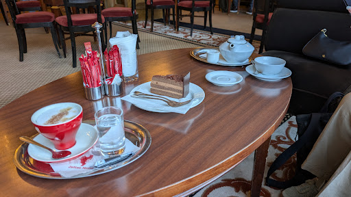 Read moreI've enjoyed coffee with cake here a couple of times. Service is impeccable and the coffee excellent. The patisserie is perhaps not the very best in the city but is certainly up there with it. I thoroughly enjoyed the chocolate mousse cake. I also really love the traditional style of the ladies' room! My friend had some of the white tea on the menu - but it was disappointingly bitter. Perhaps too many leaves, perhaps left...
