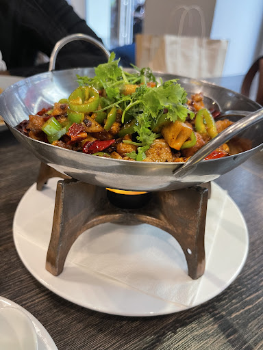 I looove this place and can highly recommend it . I have not once been disappointed for dinning and and for take away . This restaurant combines different ways of cooking in china . It offers amazing dishes such as friend noodles , fried rice , noodle soup , seafood plates and so on and one thing that is in all of them is the seasonal veggies and ingredients . I have noticed that whatever is currently in season is used in their meals giving it a freshness and diversity I love seeing . In my picture is the fried while fish which is suuuper good and addicting . Also what I can never wait to have again is the hand pulled bundle soup with tofu . The noodles are perfect consistency and the portion super big ! I recommend asking for the home made chili oil because dropping some drops of that into the soup gives it the extra kick it needs.