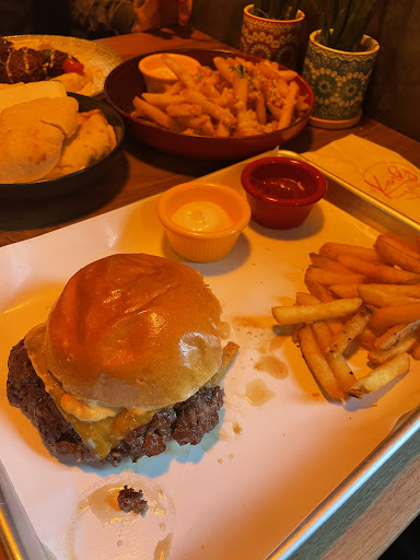 Read moreWir waren heute das erstemal im Restaurant auf Empfehlung der Bewertungen auf Google. Die Location und das Ambiente war super! Wir waren 5 Personen und die Reservierung hat super geklappt! Zur Vorspeise hatten wir Beef Tartar (EUR 13,00) und den Hummus mit Falafel (EUR 15,00) dazu Pitabrot - es war köstlich! Zur Hauptspeise hatten wir "Smashed Burger" und "Flat Iron Steak" ... Die Smashed Burger kam mit Fries inkl. Saucen angerichtet & der Geschmack war super! Das Briochebrot war superweich und das Fleisch super saftig! Die Pommes sind hald Pommes nichts besonderes! Ahja wir hatten auch Trüffelpommes mit Parmesan, die waren ok! Bedauerlicherweise war das Steak nicht besonders gut! Es lag nicht an der Garzeit - Es war eher die Qualität des Fleisch, es hatte einen komischen nach Geschmack und daher konnten wir es leider nicht essen! Das Personal war sehr zuvorkommend, als sie es sahen, dass wir das Steak nicht gegessen haben, haben sie nach gefragt woran es lag und haben uns in Kulanz die Steaks (EUR 19,00) nicht verrechnet! Ich muss persönlich sagen, dass mir auch das Anrichten der Steaks nicht sehr gut gefallen hat, es lag ein Stück Fleisch mit ein haufen Salz als Garnitur auf dem Teller! Zum Abrunden haben wir trotz des Steaksprobs Dessert und Kaffee bestellt. Wir hatten ein Baklava Cheesecake und Lava Cake! Die Kaffees war super - herrlicher Geschmack, selbst der türkische Kaffee hatte eine schokoladige Note! Das Personal (vermutlich einer der Besitzer) lud uns auf das Cheesecake ein und sagte, dass es aufs Haus sei! Wir haben für alles ca. EUR 142.- gezahlt inkl. Trinkgeld! Nun nach Durchsicht der Rechnung stellte ich fest, dass uns das Cheesecake sowie ein Espresso, welches wir nicht konsumiert haben verrechnet wurde. Leider haben wir es erst jetzt gesehen, vor Ort wurde die Bestellung beim Zahlen nicht mehr wiederholt, da wir eine Gesamtrechnung forderten. Schade! Aber da die Vorspeisen super gut waren, werden wir Kenks nochmal besuchen und ne neue Chance geben uns zu überzeugen! :) Vieles ging heute schief, aber das Personal hat die 4 Sterne Bewertung positiv...