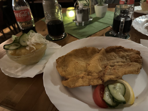 The restaurant was packed when we arrived, and the only server was apologetic that they only accepted cash, didn’t have an English menu, the kitchen was backed up, and she only had a small table for us in a back - all of which we told her we were completely fine with. Prepared for a wait, we were very surprised when our orders came out quickly, hot, fresh, and delicious. Some of the best schnitzel I’ve had! Definitely worth a visit. Tip that girl extra with the money you’re saving because the prices are so...