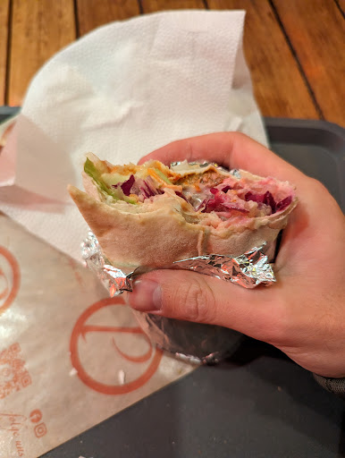 Read moreQuality (2/3): Falafel turn out to be a durum as they didn't have bread. Standard non-wormed-uped wrap with a variety of medium quality ingredients. They put two different sauces, hummus, and around 5 different vegetables. And yes. The falafel is freshly made but tasteless. Still whole durum feels as a good food. For Vienna is good.