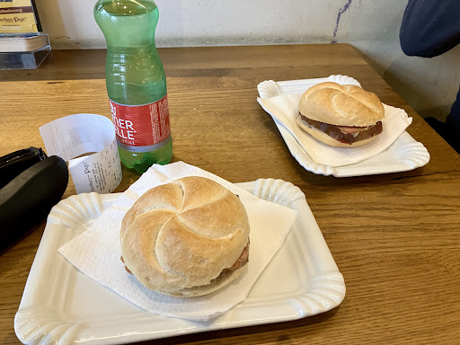 I sampled the classic leberkäse and the chili‑cheese variant. Each was packed with juicy, flavorful meat, served in a fresh, crusty roll. A cold draft beer paired perfectly with the rich sandwich, and the combo felt like a satisfying meal under €10. Depending on the flavor, there are over a dozen types to choose from—from truffle to vegetarian options—so you can try something new each visit.