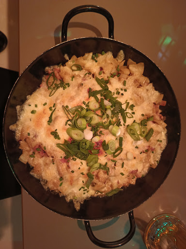 We were looking for some proper authentic Austrian food, and this place was in the top recommandations, and happened to be near by our accommodation. Went there on a Friday evening with no booking even tho Google had recommended to make one before going. Ben, our waiter, welcomed us, and got us the only table available, he was friendly and very professional, he has a perfect english, so therefore could give us good recommendations. One of us got the cheeses dumplings, also called Käsespätzle your could consider it as Austrian Gnocchi. The other got a Cheeseburger, with fries, and as a burger connoisseur, I can say it was a very good burger, ordered it with a side of Mix Salad, I was a bit sceptical when it arrived as it had some sauerkraut, but ended up with a clean plate. We also ordered a bottle of Viennese red wine, not knowing exactly what it would be, but ended drinking the whole bottle as it was a nice full bodied red wine. Then, desserts, Ben told us there was a mousse au chocolat available, which I jumped on, and enjoyed it thoroughly, and my partner got the Pulled fluffy pancakes with rum soaked raisins and stewed plums, which was equally enjoyable. We asked Ben for some recommendations and he gave us some!
