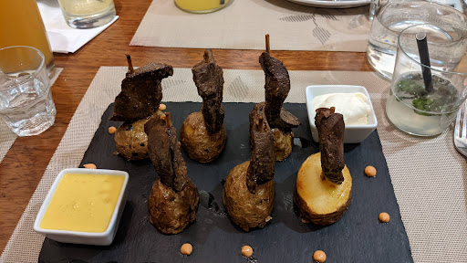 This place has OK food, but the taste is nothing special. Everything we had tasted a bit bland. I have never been to Peru, but I highly doubt this place serves really delicious Peruvian food. They also serve cheaper meat cuts than what's written on the menu, eg. "EL ÚNICO LOMO SALTADO" should contain beef fillet, but it's definitely a much tougher beef cut than that. To be honest, I would never even expect beef fillet in a dish that costs 16,4€. The beef heart in "ANTICUCHOS DE CORAZÓN DE RES" was almost completely cold and super tough. The potatoes in that dish were really good, but the sauces tasted like store bought. The food prices are below average and I assume that's the reason why the restaurant survives. The drinks are a bit overpriced. I ordered a 0,33l non-alcoholic beer (Beck's) for 4,4€.