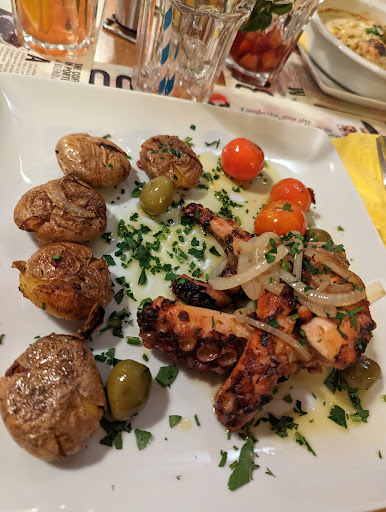 The bad things: The food was sadly a big disappointment. The octopus with potatoes maindish for 24€ was overall too fatty and had not enough spices to generate some form of elaborate taste. The tips of the octopuses were completely overdone and tasted like flour and a bit bitter. What a waste of the animal, I felt a bit sad after eating the dish.