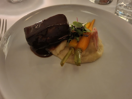 Loca is what you are if you pay €79 for six courses here or consider this fine dining. There is one server and one cook compared to similarly priced Michelin starred restaurants we've been to (in Spain admittedly where things are cheaper) but where you have one server a good runner and a sommelier for every few tables and sauciers, pastry chefs sous chefs etc in the kitchen. I would absolutely avoid booking here, we decided after a long day sightseeing that we were too tired for a six course meal and when we phoned they kindly agreed to give us a three course meal for €50 each. The starter was a prawn and papaya salad, the main was duck breast which was on the tough side and had no sauce and some some overcooked celery and courgette, and desert was a mango and coconut rice ice sorbet which was far too acidic. There was nothing innovative, the best I can say is that the prawns and duck breast were not overcooked. We had a much nicer meal at Liebsteinsky the night before which was less expensive and nearby so if you need an alternative book there, or better yet save the €80 and make yourself a sandwich, and you will probably feel...