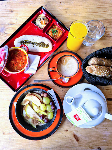 You might think that a place like this: a small meierei on a parkinglot might not be much but don't be fooled. It is such a gem. This small place was restaurated a few years ago and has a beautiful and creative intereur with a lot for kids to play and they offer material to draw and read. The food is simple but good and there is nothing better than drinking a coffee or having one of the breakfast sets after a walk in the nearby Schwarzenberg Park. The Meiereis speciality is a special bread they make. Children and...