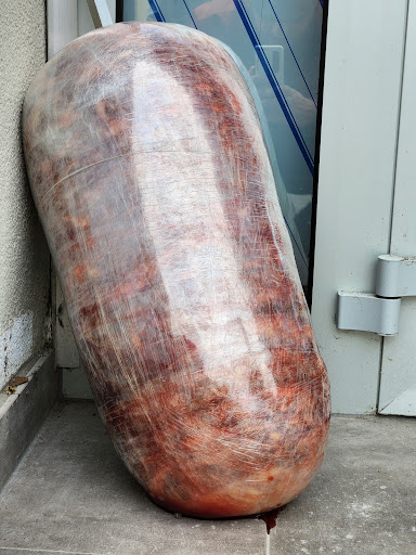 Ich wollte am Vormittag etwas essen, doch als ich vor dem Geschäft stand, habe ich leider etwas gesehen, das mir den Appetit verdorben hat. Auf dem Boden lag rohes Fleisch, und das Blut hatte sich bereits abgesetzt. Das Lokal war geschlossen, aber dieser Anblick war alles andere als einladend.