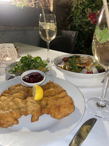 Read moreIt was really a good surprise from the outside you would have no idea what a lovely terrace area they have in the back ( Indoors has white tablecloth seating that two was very nice) but it was a very nice evening so it was perfect to sit out on the terrace the food was gourmet that was also a surprise I had the avocado tartare It was very good and very creatively plated The Wienerschnitzel was a very large portion it came with boil potatoes it was very good also had the salmon with beet crram ( not really sure what that was but it was very good) salmon itself was just ok. again very creative!!!dessert which I can’t even describe they said it was ice with raspberries tonkabohne it was good and very creative !!!!this really teaches me a lesson when you go past a door it doesn’t look that interesting from the outside but when you read the reviews and walk inside you can get a pleasant surprise the waiter was very helpful knowledgeable professional and nice which also made the meal enjoyable the outdoors terrace has flowers all around nice Setting with a lot of history to it !!!prices...
