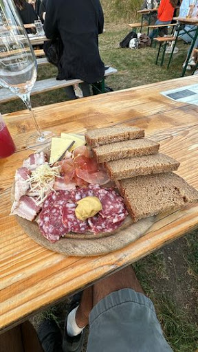 The lounge chairs offer a great view. They have small barrel like tables. The separate queues for foods and drinks help to speed things up. Card payment was easy. We had the Jause which was pre-prepared and very fast. Good sausages and cheeses. The Schnitzelbrötchen was a little dry so make sure you get mustard or something with it.