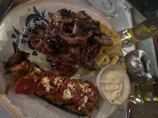 The interior was beautiful and tidy, creating a relaxed and cozy atmosphere. The food was absolutely delicious! fresh, healthy Mediterranean dishes full of flavor. We ordered pork belly, lamb chops, chicken skewers, and the soup of the day, which was a lentil and tomato soup. Every single dish was outstanding. The meat dishes came with generous portions of salad and French fries, which made the meal even more satisfying.