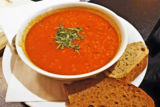 The food is average, not bad but also not great, and decidedly hit and miss. Some of it is pretty good, like the lentil soup and some of it is very much meh (the pitas). The lunch menu is normally ok but you can get better in this area.