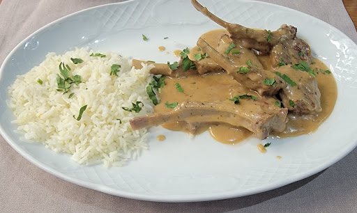 Ordered: Lamb with Thyme, Cretan Lentil Soup, Cucumber Salad, still water to drink. Total bill = 42 EU