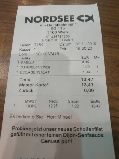 Read moreThe food at Nordsee was decent for a fast food, but I was concerned about the hygiene practices. I noticed some staff handling money and then touching food and plates without washing their hands. This is a major hygiene issue. Please make sure employees wash or sanitise their hands after handling cash to avoid any cross-contamination. Hygiene is crucial, especially in a food establishment. And as consumers we are...