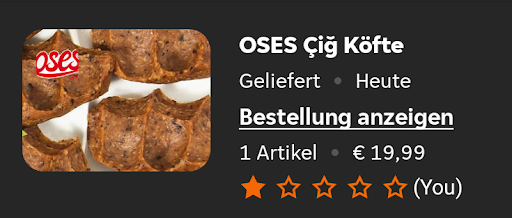 Besonders hervorzuheben ist die tolle Atmosphäre im Laden, es ist sauber und gemütlich eingerichtet, sodass man auch gerne dort bleibt, um sein Essen zu genießen. Ich werde auf jeden Fall wiederkommen und kann es jedem nur ans Herz legen, der auf der Suche nach authentischem und köstlichem Cigköfte ist. Weiter so, ihr macht...
